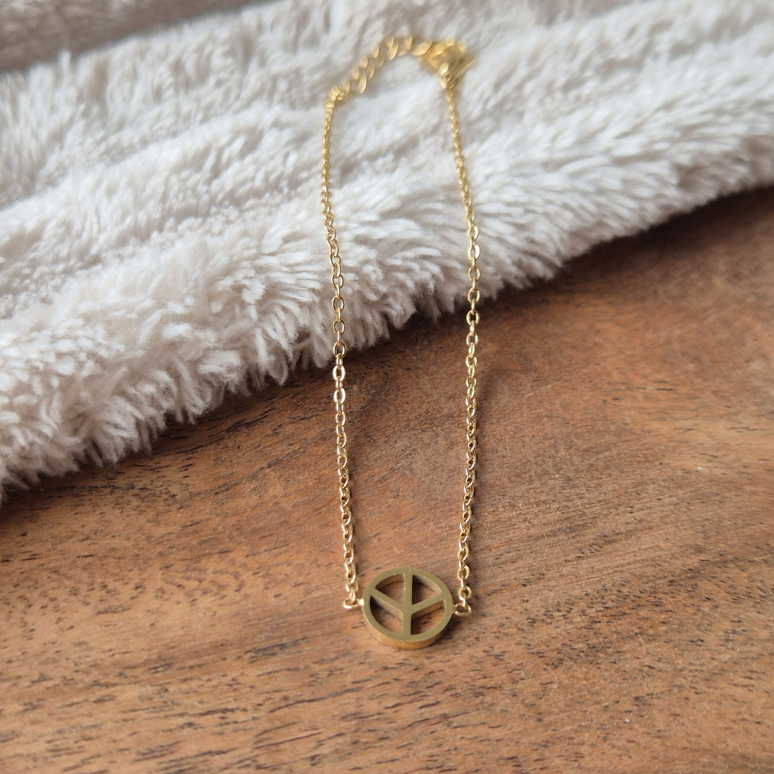 Deze stijlvolle peace armband geeft iedere outfit direct een subtiele en betekenisvolle uitstraling. Het minimalistische ontwerp maakt combineren bovendien eenvoudig met andere sieraden. Dankzij het sterke stainless steel blijft de armband mooi en verkleurt hij niet. De verstelbare maat zorgt daarnaast voor een comfortabele pasvorm. Perfect voor dagelijks gebruik of als bijzonder cadeau.