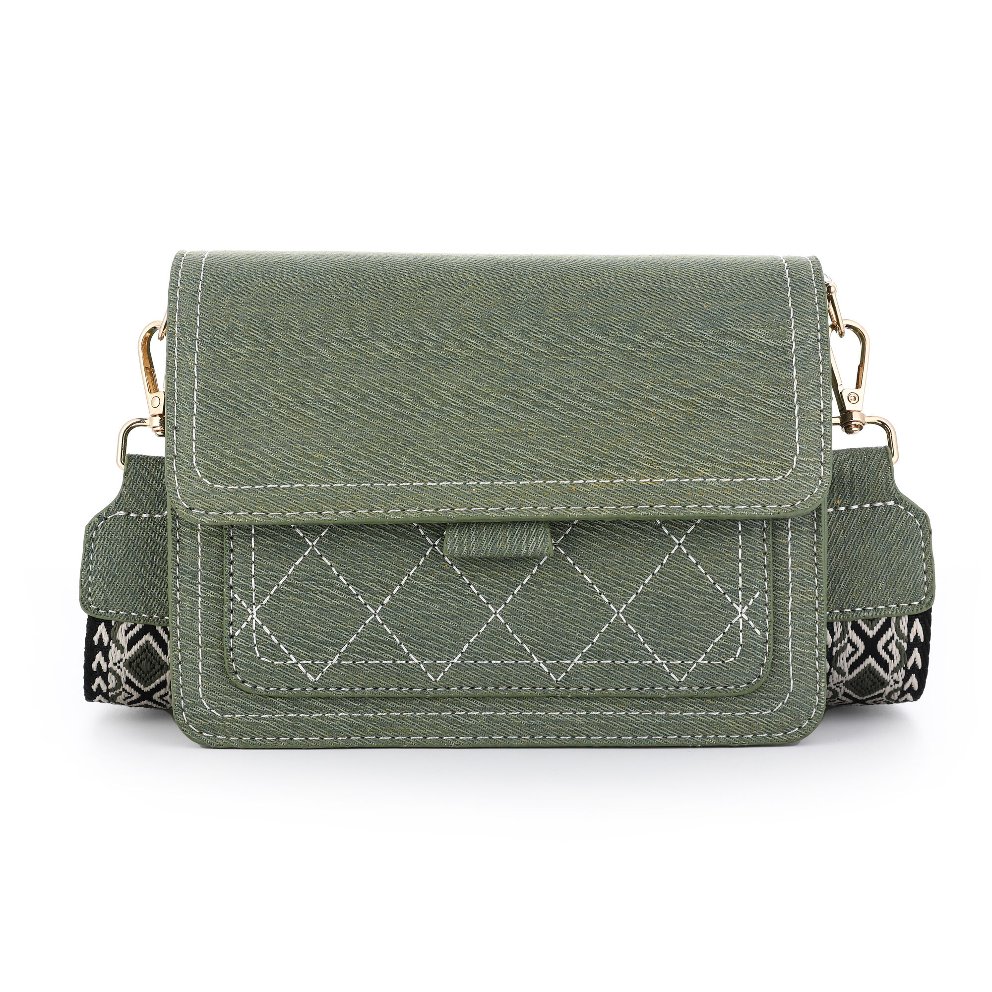 Ontdek de groene denim schoudertas, een stijlvolle en trendy accessoire.