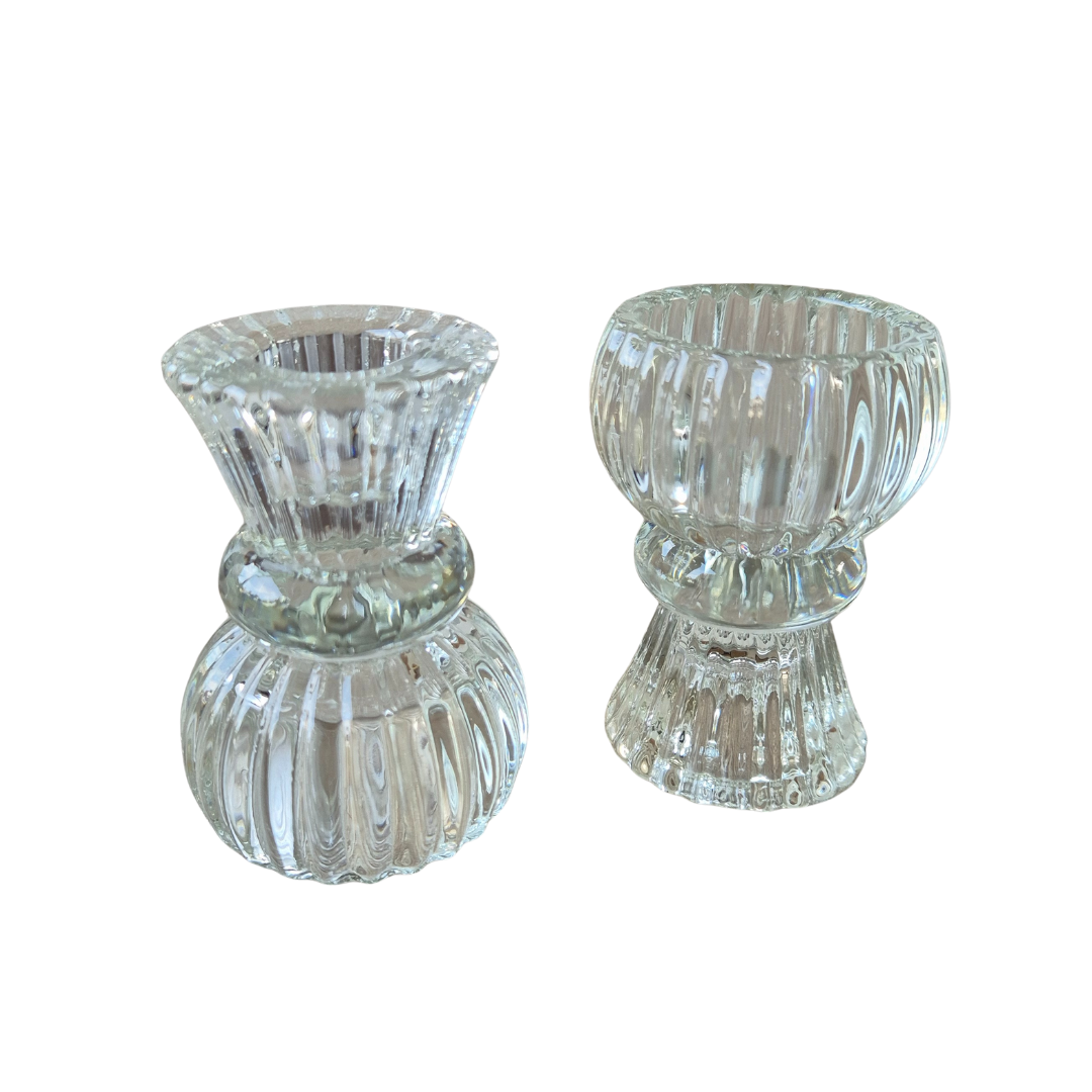 Deze transparante glazen kandelaar en waxinelichthouder in één is een stijlvolle en veelzijdige woonaccessoire. Dankzij het slimme 2-in-1 ontwerp gebruik je dit glaswerk zowel als kandelaar voor dinerkaarsen als glazen waxinelichthouder. Het heldere glas zorgt voor een warme, sfeervolle lichtreflectie en past moeiteloos in elk interieur.