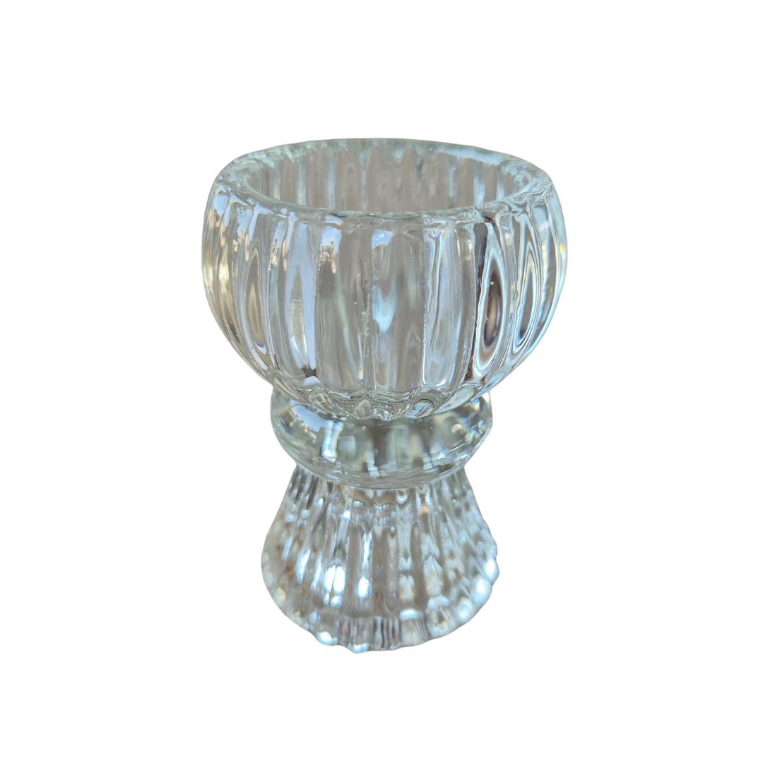 De kandelaar is gemaakt van hoogwaardig transparant glas en heeft een compact formaat van 5 x 8 cm. Door de heldere kleur past dit item moeiteloos in elk interieur: van modern en minimalistisch tot landelijk of Scandinavisch. Het glas vangt het kaarslicht prachtig op en zorgt voor een warme, sfeervolle uitstraling op tafel, een dressoir of vensterbank.