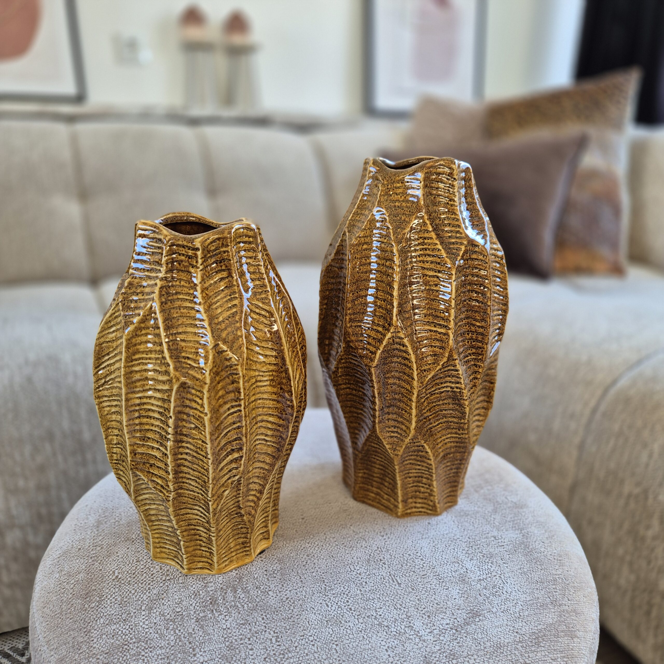 Deze organische vaas bruin maat L is een stijlvolle toevoeging aan jouw interieur.