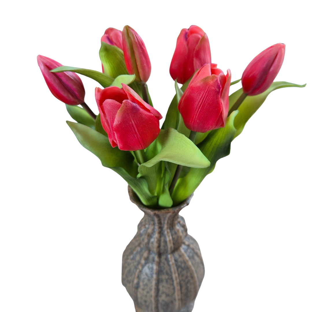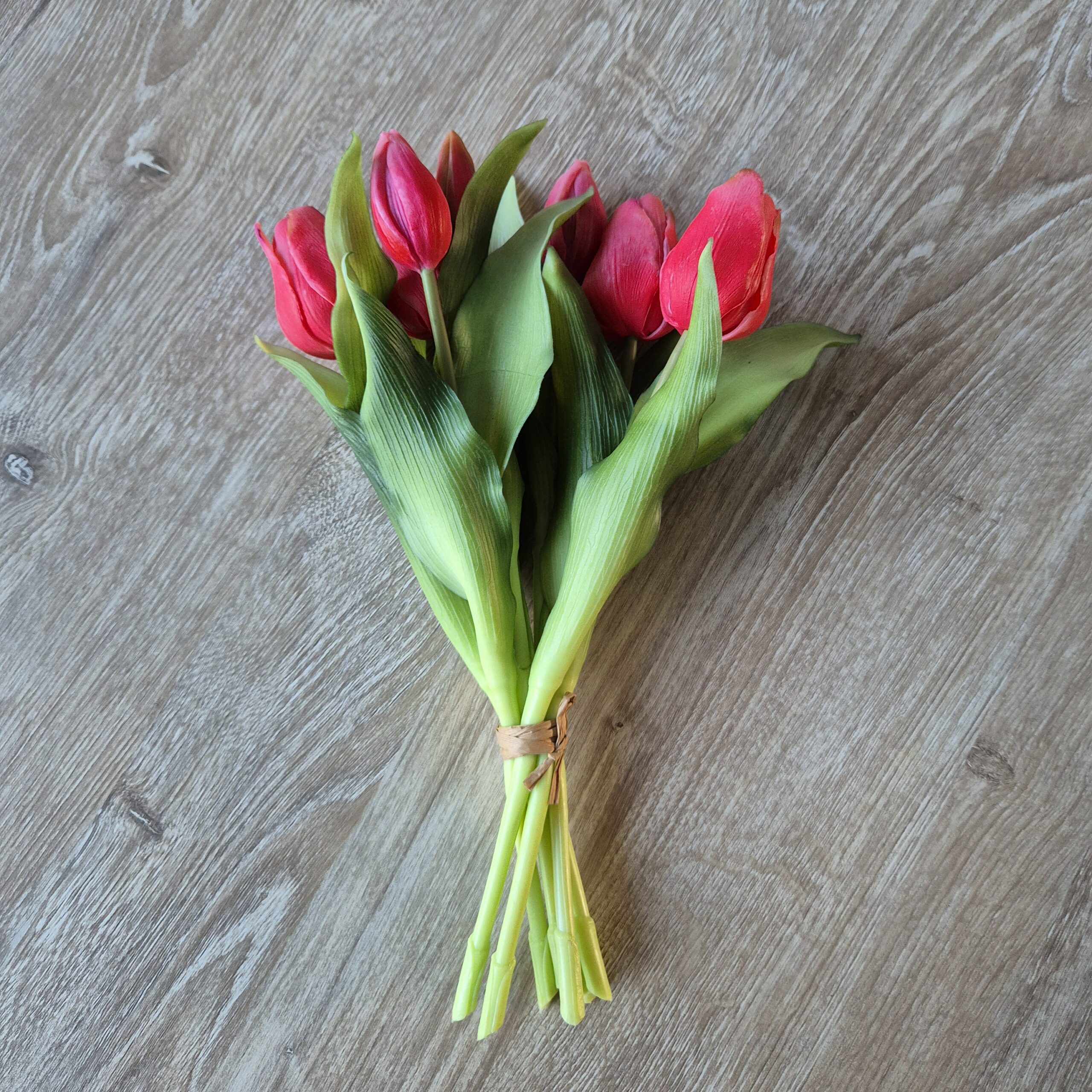 Deze realistische kunsttulpen zijn 30 cm lang en nauwelijks van echt te onderscheiden dankzij het stevige waxlaagje. De stelen zijn buigbaar, onderhoudsvrij en gaan extra lang mee. Ideaal voor elk interieur: geen water nodig, altijd mooi en geld besparend doordat je niet wekelijks een nieuw boeket hoeft te kopen. Perfect als duurzame decoratie voor vaas of styling.