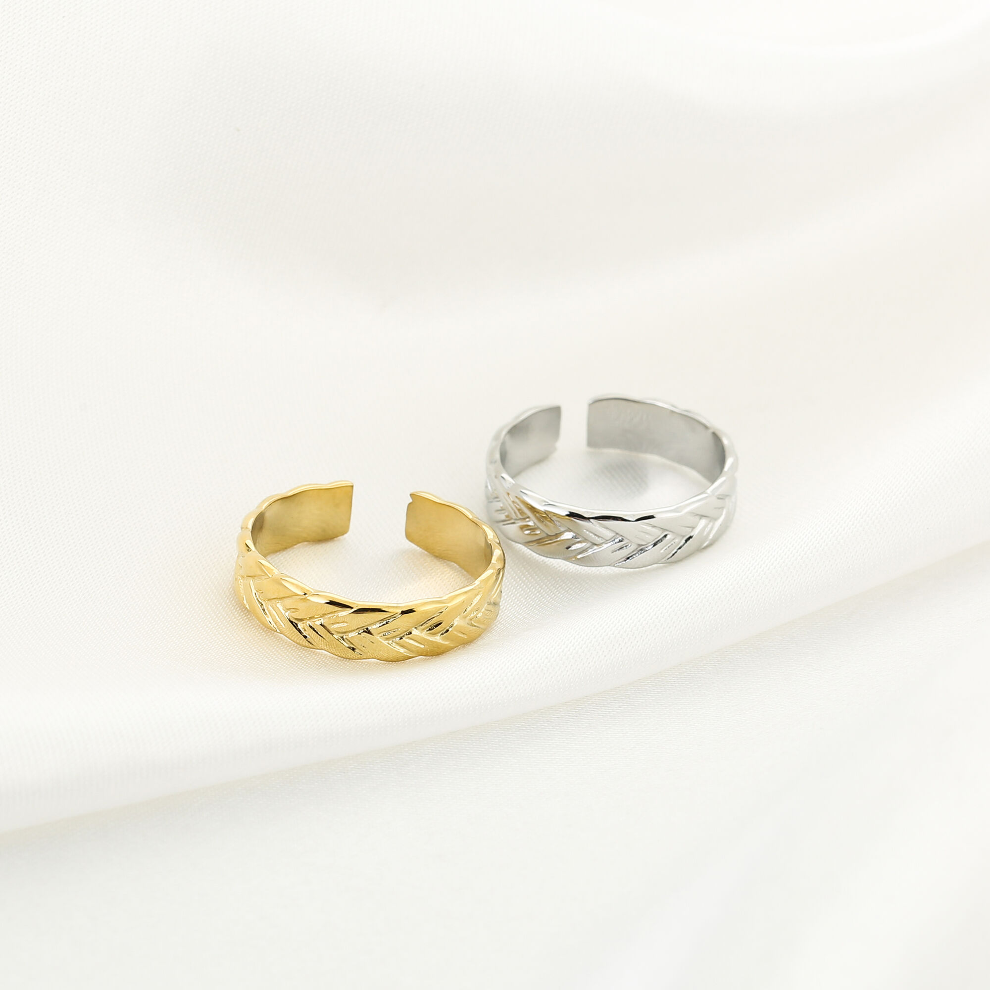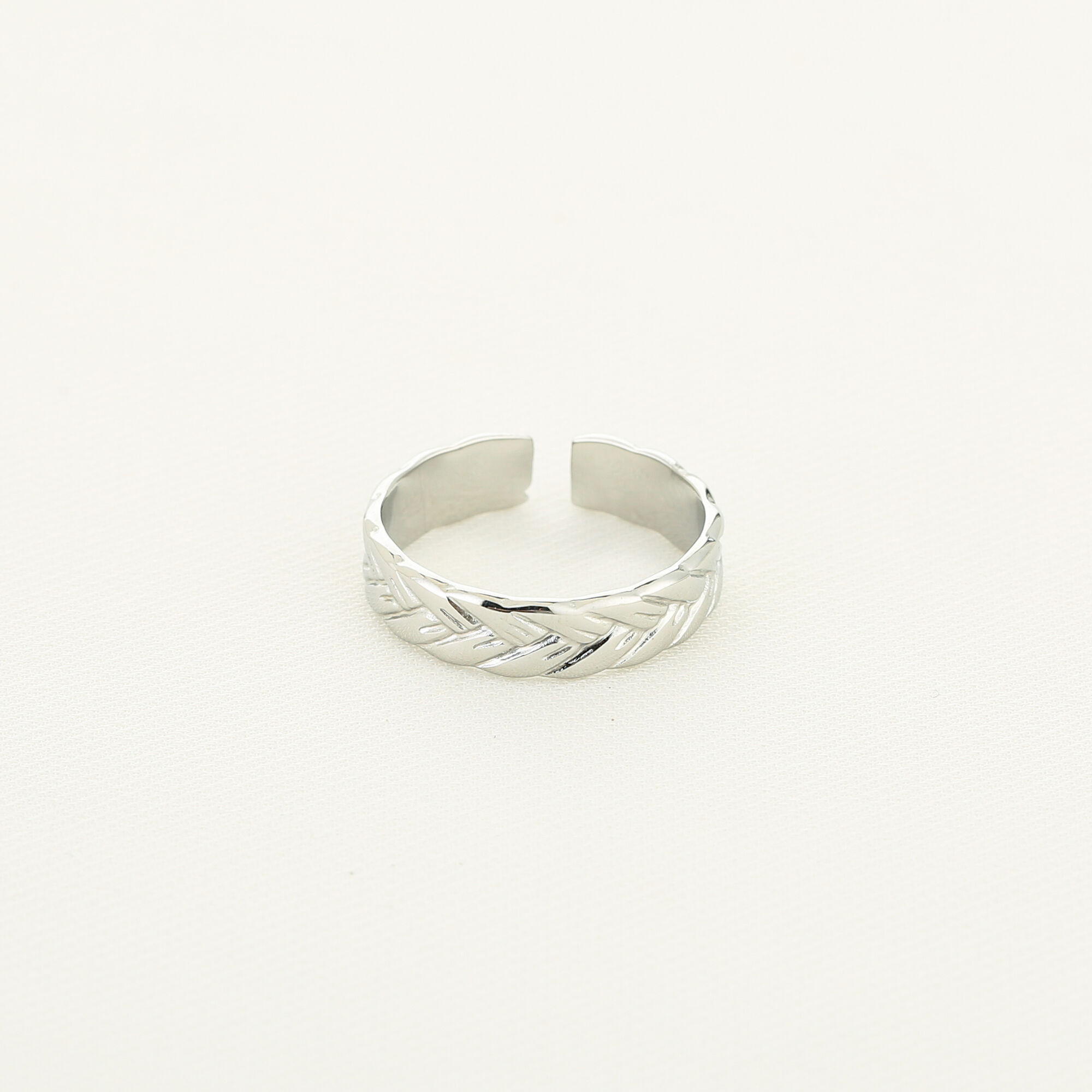 Deze verstelbare zilveren ring met subtiel gevlochten patroon is een tijdloze toevoeging aan je sieradencollectie. Het open design zorgt voor een comfortabele pasvorm, waardoor de ring eenvoudig verstelbaar is en altijd perfect zit. De verfijnde structuur geeft een stijlvolle en moderne uitstraling die bij elke outfit past. Ideaal om solo te dragen of te combineren met andere ringen voor een trendy, gelaagde look. Een must-have voor liefhebbers van minimalistische sieraden.